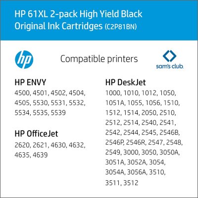 Hp 61xl High Yield Original Ink Cartridge Black 2 Pk 480 Page Yield Sam S Club
